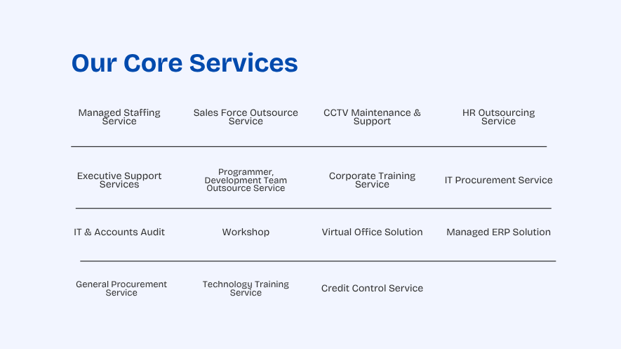 Managed Staffing Service, Sales Force Outsource Service, HR Outsourcing Service, And more…